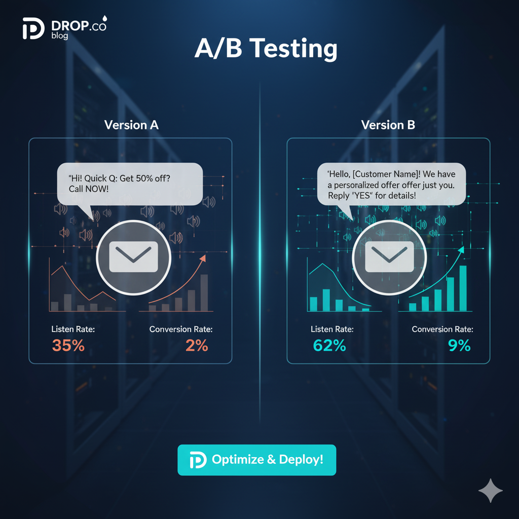 A/B testing, or split testing, is a powerful way to optimise RVM campaigns. By sending two or more variations of a message to small segments of your audience, you can see which performs better before rolling it out broadly.